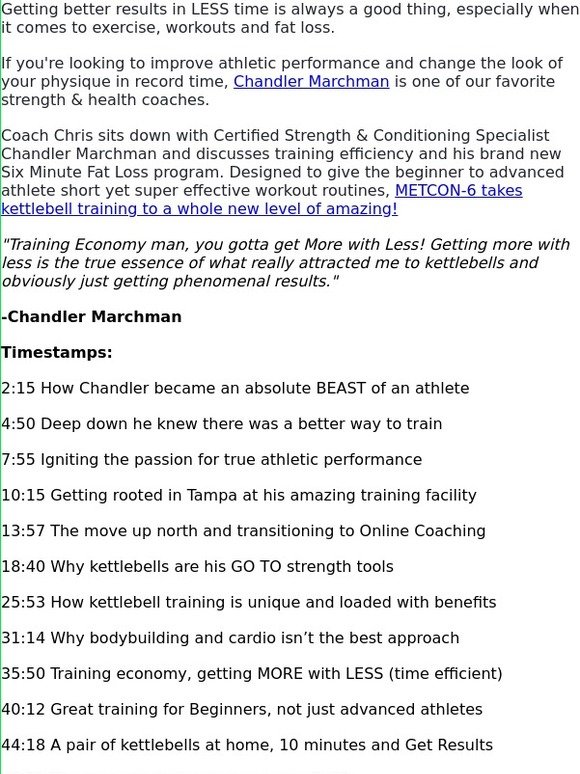 Chandler Marchman Metcon 6 Chandler Marchman Metcon 6 / Metcon 6 is a revolutionary program developed by an elite soviet union special forces trainer.