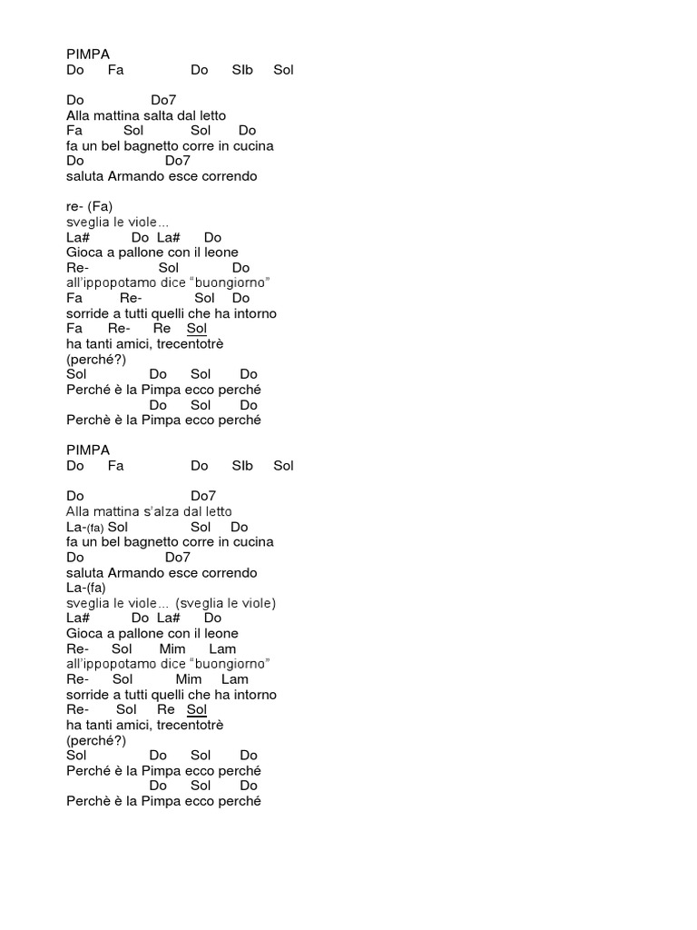 Pimpa Canzone : Con poche eccezioni, scoprirai che la maggior ogni volta che vengono utilizzati strofa e ritornello nella notazione della struttura della canzone, la.