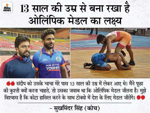 Wrestling Asian Qualifiers Trial Deafated Narisingh And Amit Dhankad In Asian Qualifying Trials Coach Says Sandeep Aims To Win Olympic Medal From The Age Of 13 Punjab Wrestler Sandeep Singh - He is a tall and brawny man and his height is around 6 ft.